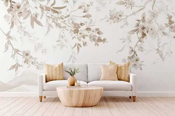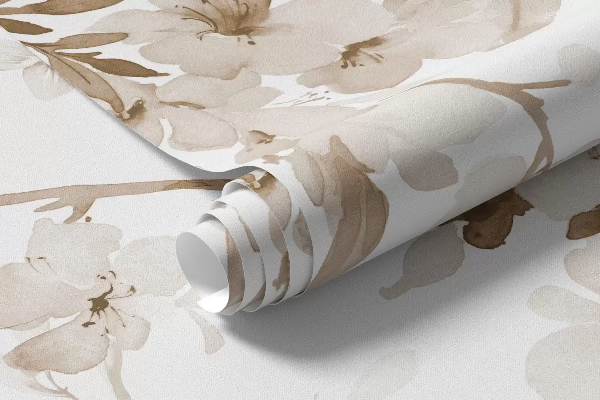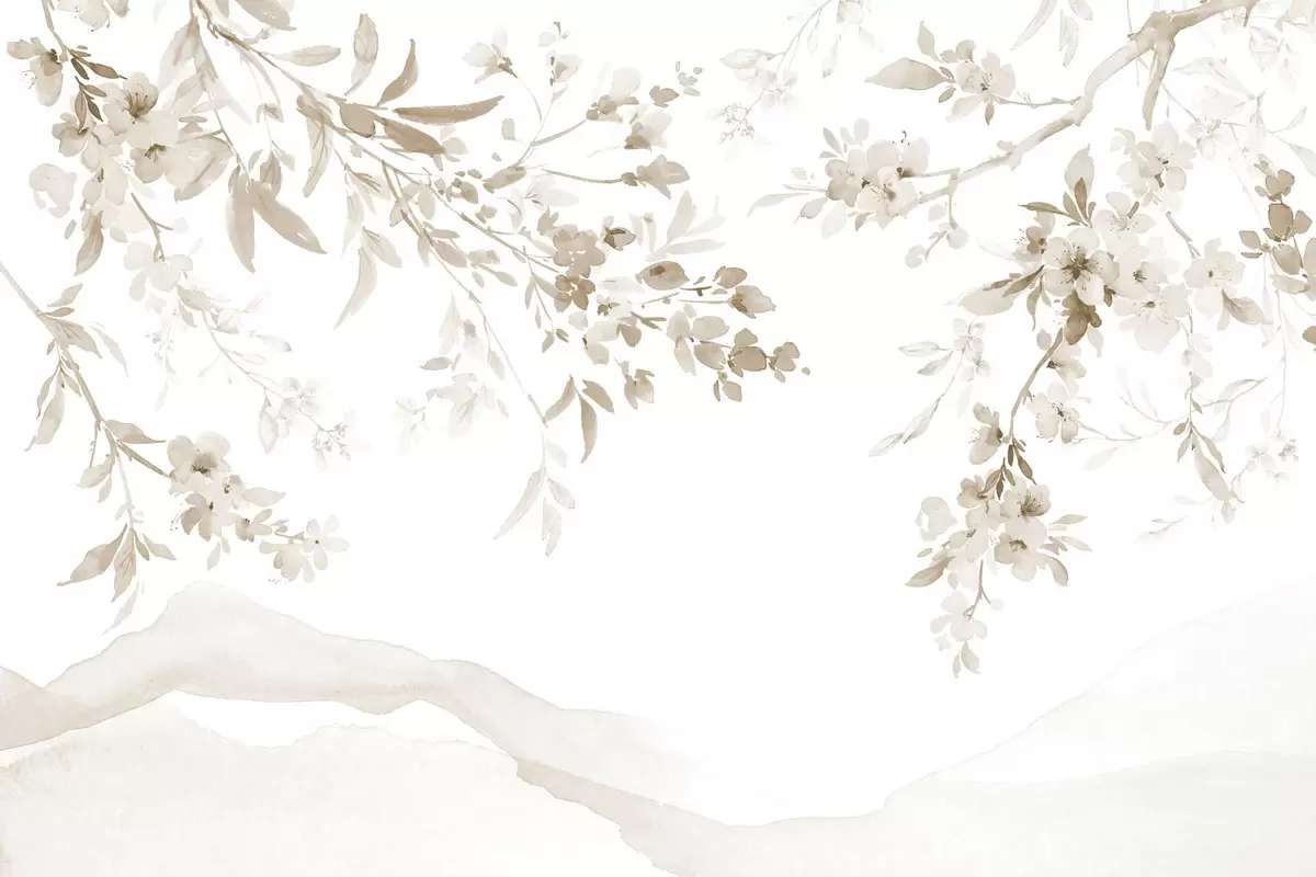 Фототапет Цъфтящи клони, имитация на акварел, бежови нюанси Nr w03935v2