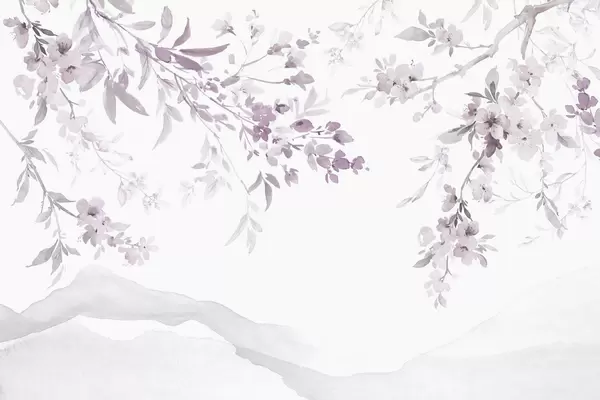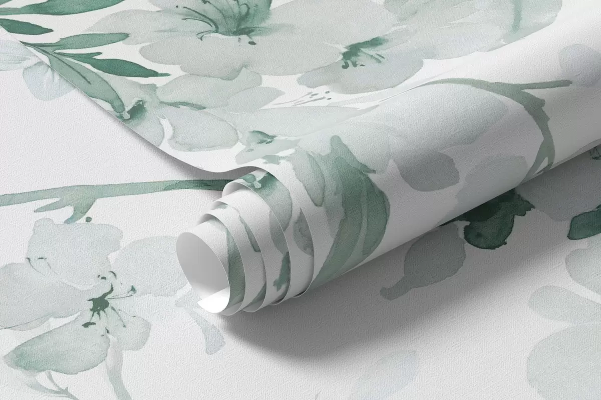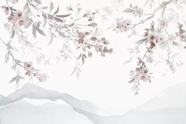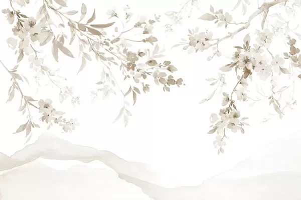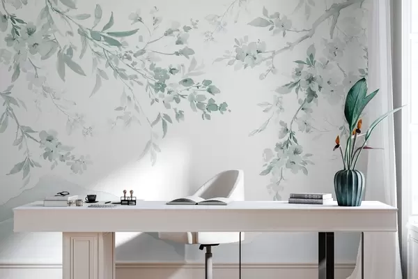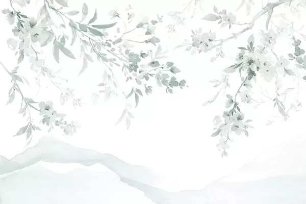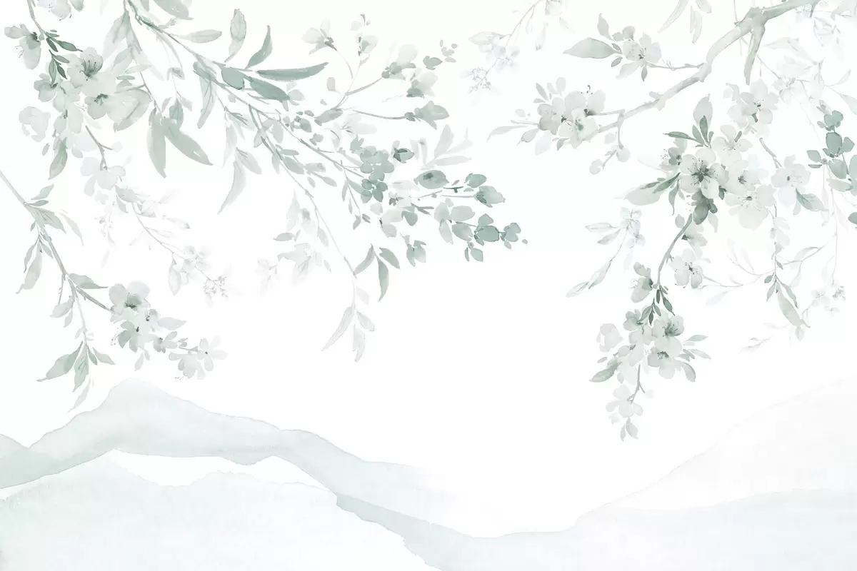 Фототапет Цъфтящи клони, имитация на акварел, зелени нюанси Nr w03935v3