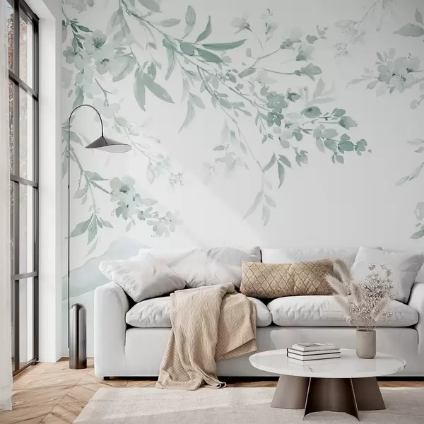 Фототапет Цъфтящи клони, имитация на акварел, зелени нюанси Nr w03935v3