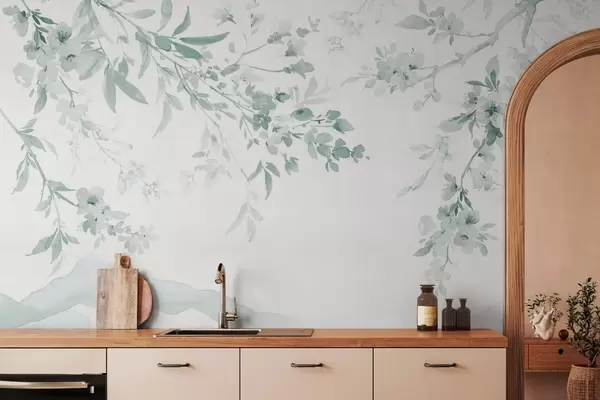 Фототапет Цъфтящи клони, имитация на акварел, зелени нюанси Nr w03935v3