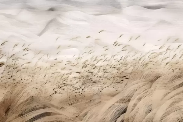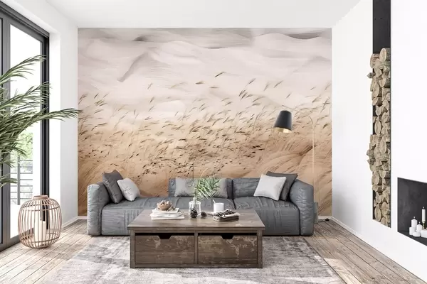 Фототапет абстрактни поля от трева, раздути от вятъра, в бежови и каменни тонове, линии от скица с мастило на фона на текстурирана хартия, северна провинция, спокойствие Nr w03941