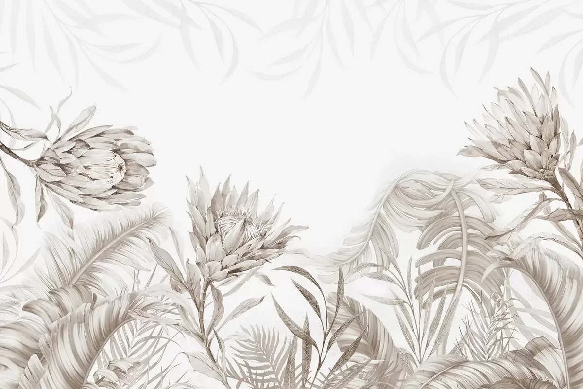 Фототапет Протея сред тропически листа, бежови нюанси Nr w03952