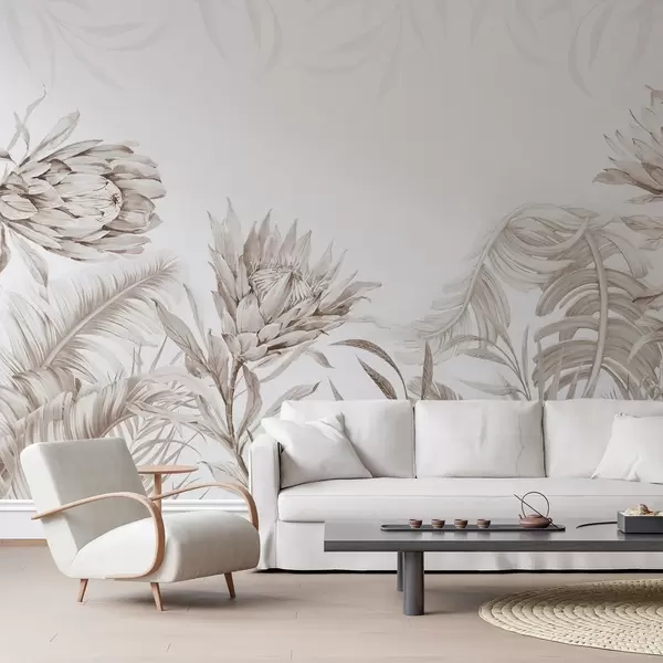 Фототапет Протея сред тропически листа, бежови нюанси Nr w03952