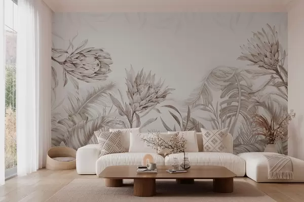Фототапет Протея сред тропически листа, бежови нюанси Nr w03952