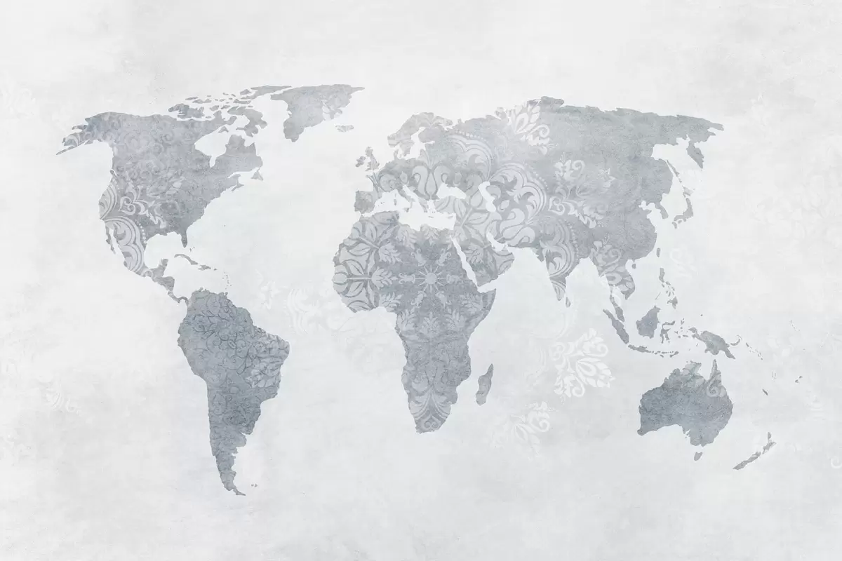Фототапет Карта на света с модел, сини нюанси Nr w03954v2