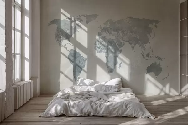 Фототапет Карта на света с модел, сини нюанси Nr w03954v2