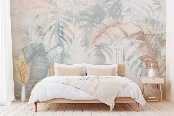 Фототапет Тропически листа в гръндж стил Nr w03956