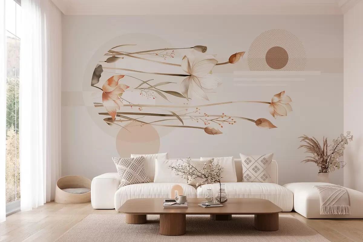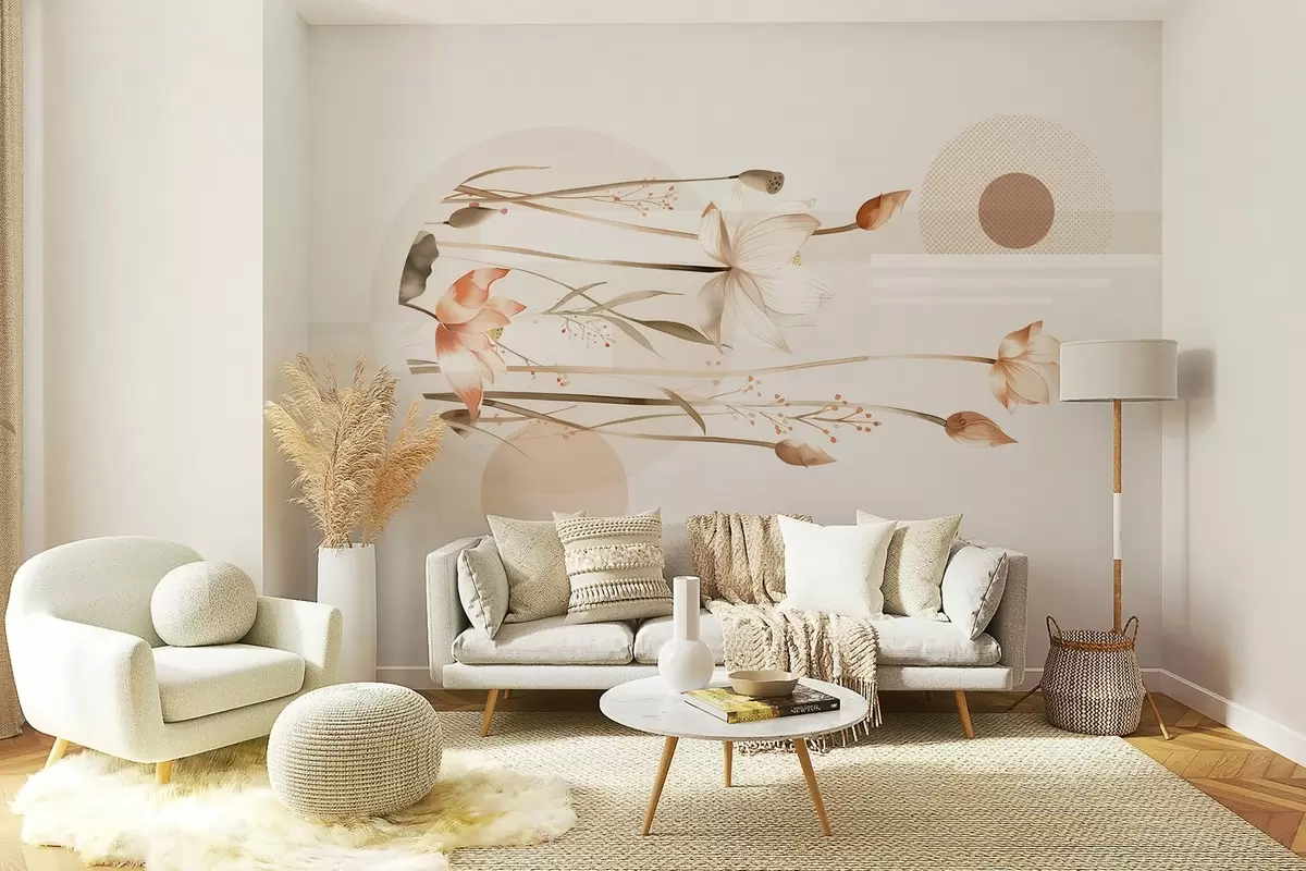 Фототапет пастелни лилии и бохо геометрия Nr w03964