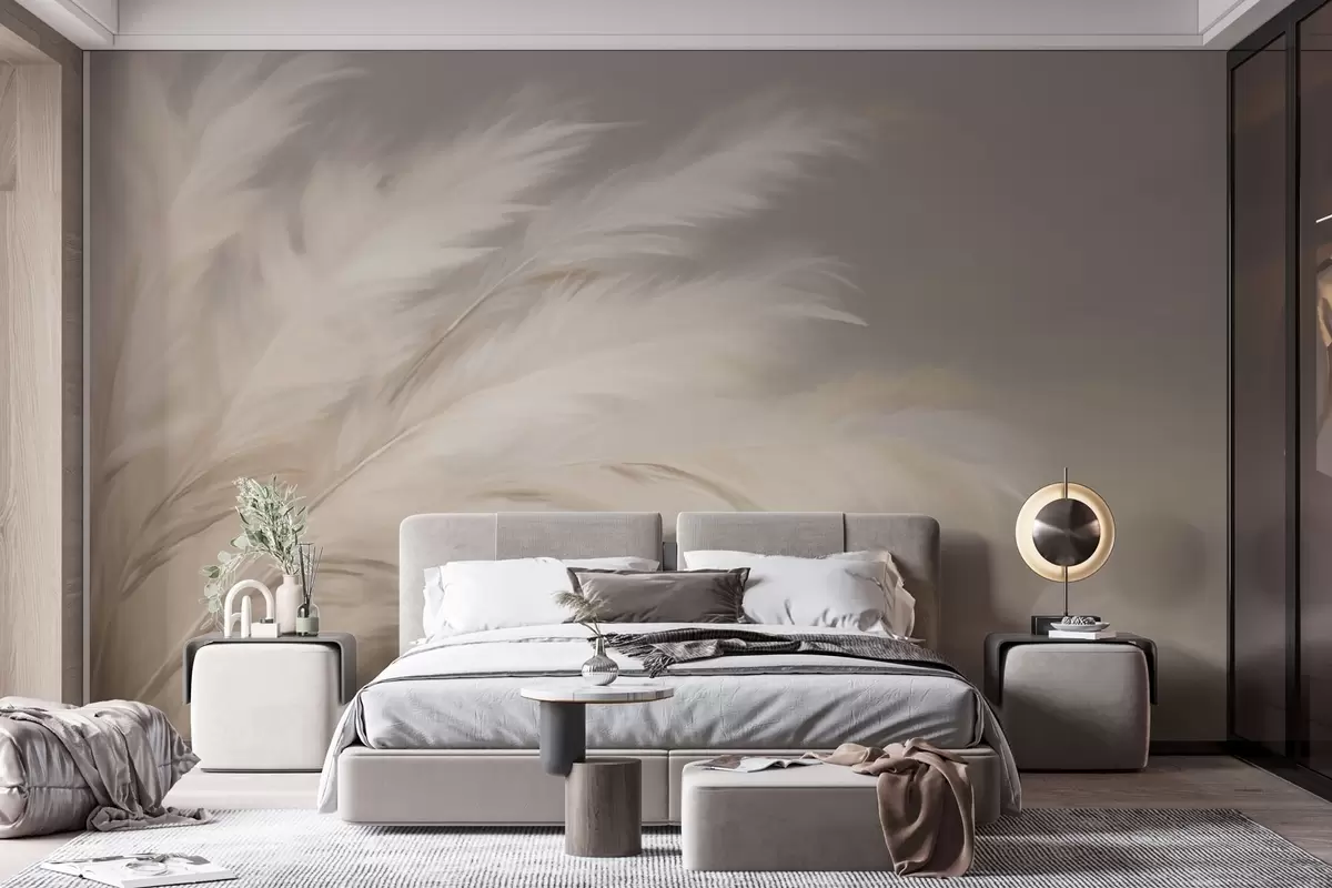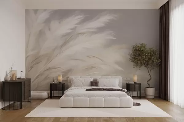 Фототапет Меки пухкави треви в бежово и сиво Nr w03992