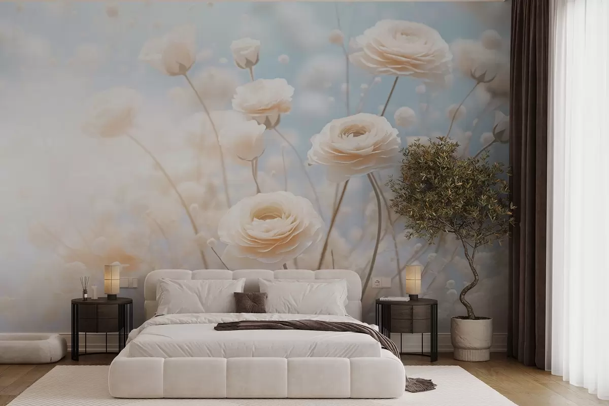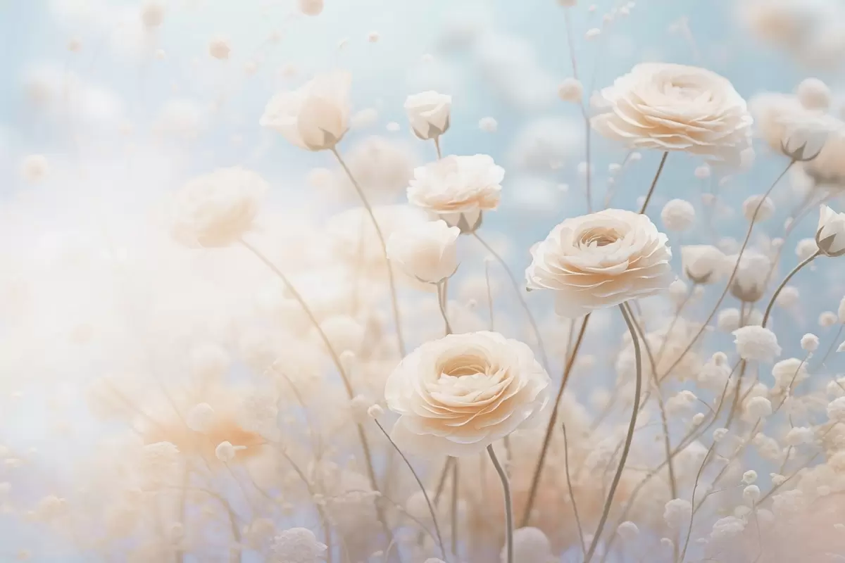 Фототапет Деликатни кремави рози на светлосин фон Nr w03997