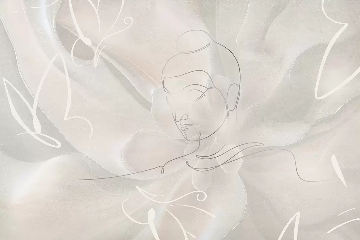 Фототапет Флорална абстракция с рисунка на Буда, бежови цветове w04004