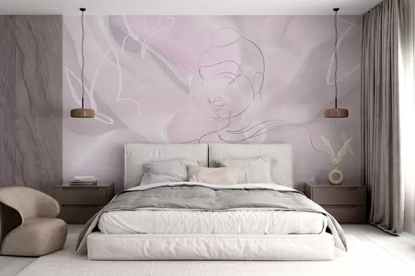 Фототапет Флорална абстракция с рисунка на линията на Буда, розови цветове Nr w04004v2