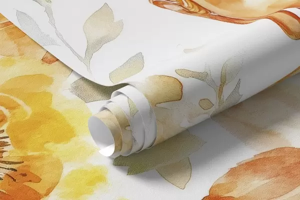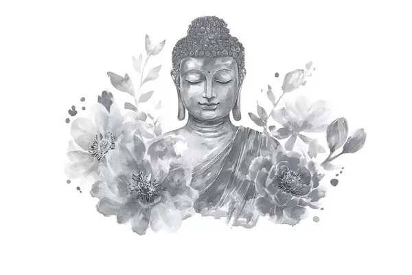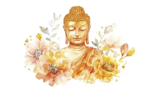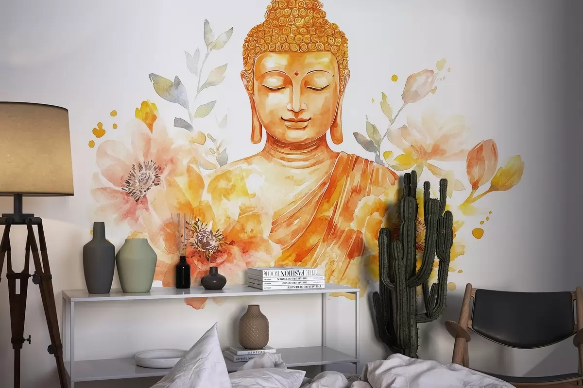 Фототапет Акварелен Буда с цветя, духовен, оранжев цвят Nr w04005