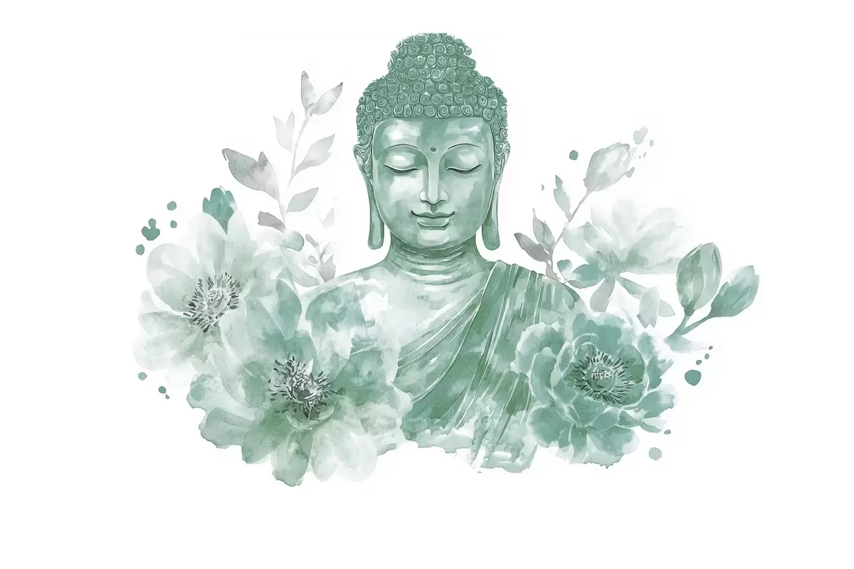 Фототапет Акварелен Буда с цветя, духовен, зелен цвят Nr w04005v3