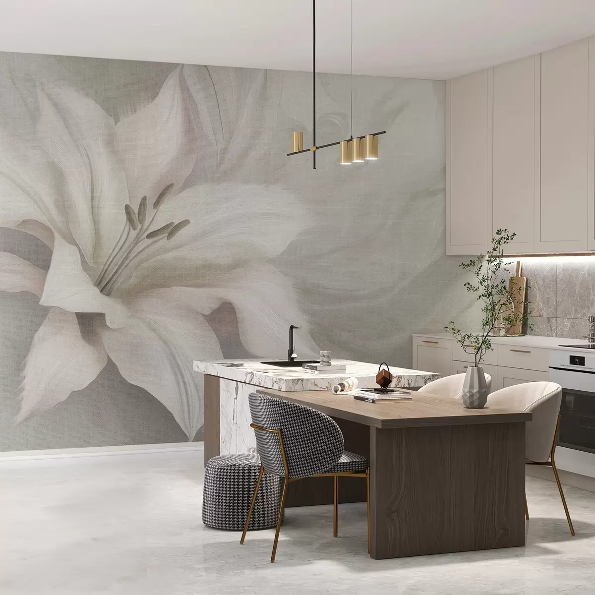 Фототапет Лилия цвете течност абстракция, флорални, сиви цветове Nr w04006v2