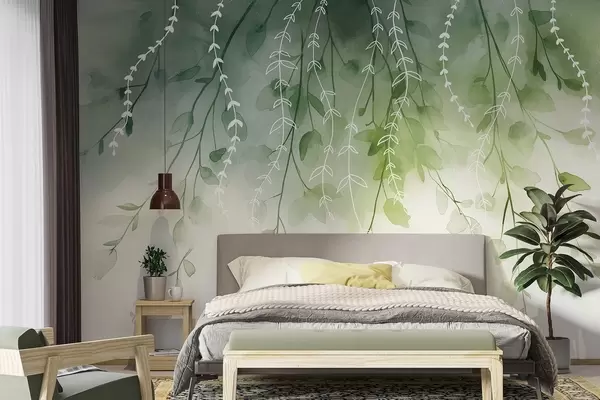 Фототапет Клони с листа в акварелен стил, естествени зелени цветове Nr w04007