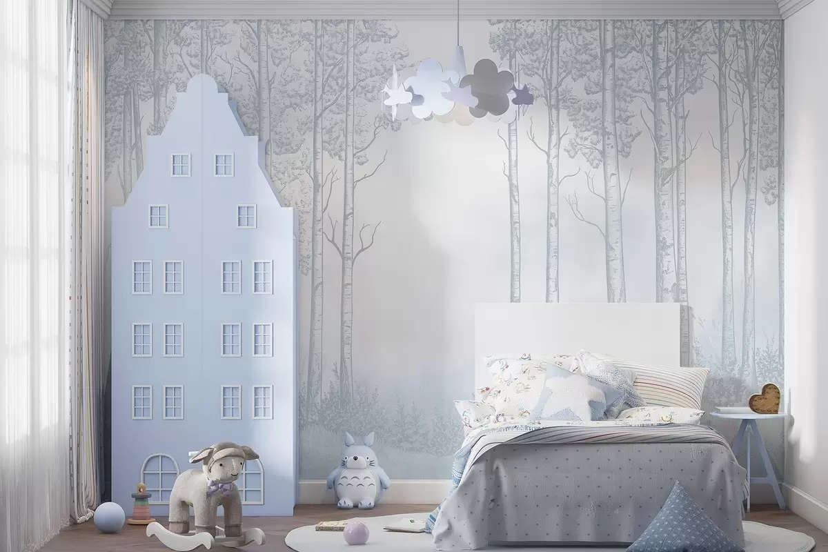 Фототапет Гора с брези, минимализъм, природа, синя цветова палитра Nr w04009