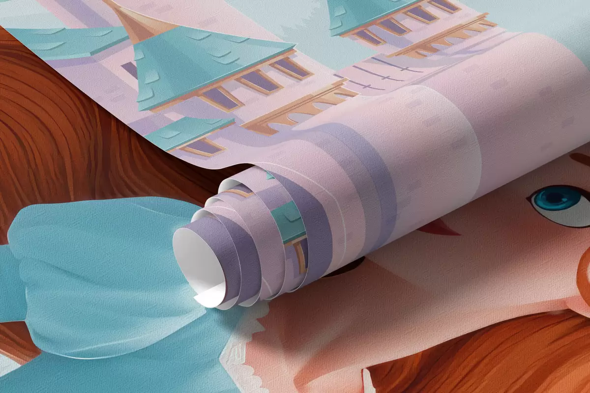 Фототапет Принцеса сред облаците на фона на пейзажа със замъка Nr w04015