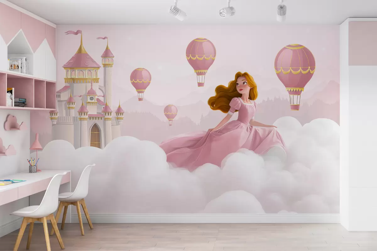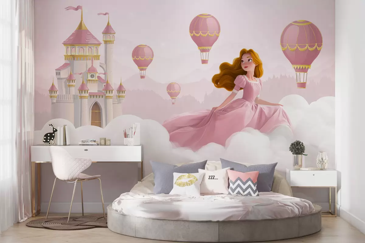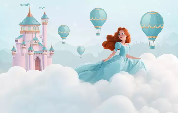 Фототапет Принцеса сред облаците на фона на пейзажа със замъка Nr w04015v1