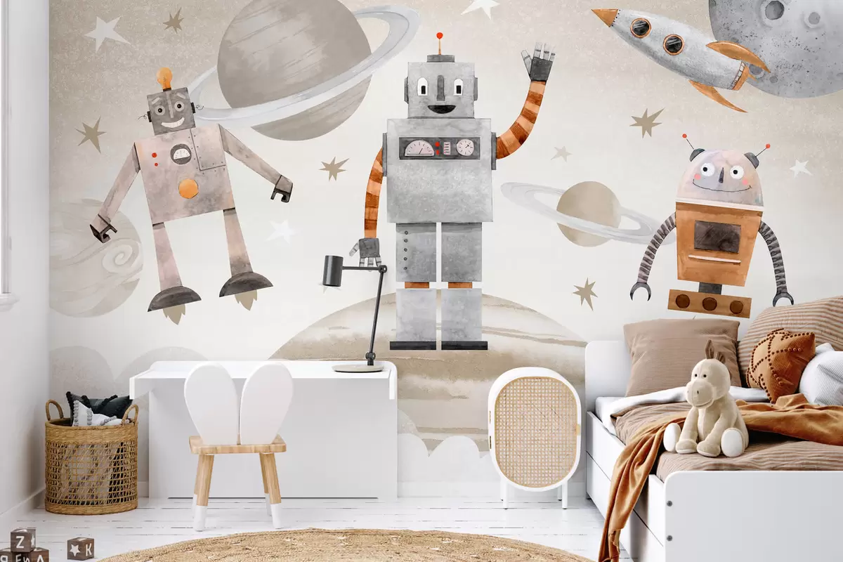 Фототапет Роботи в космоса в акварелен стил Nr w04016v1
