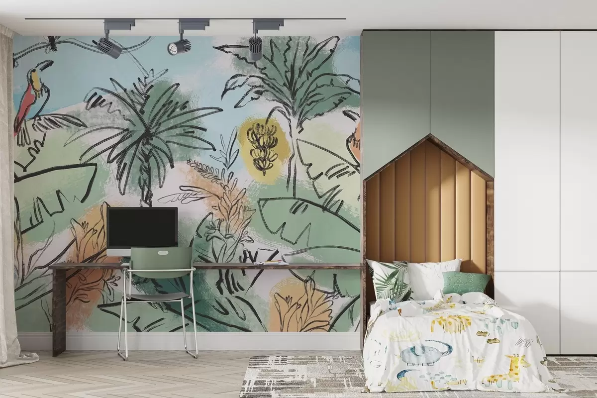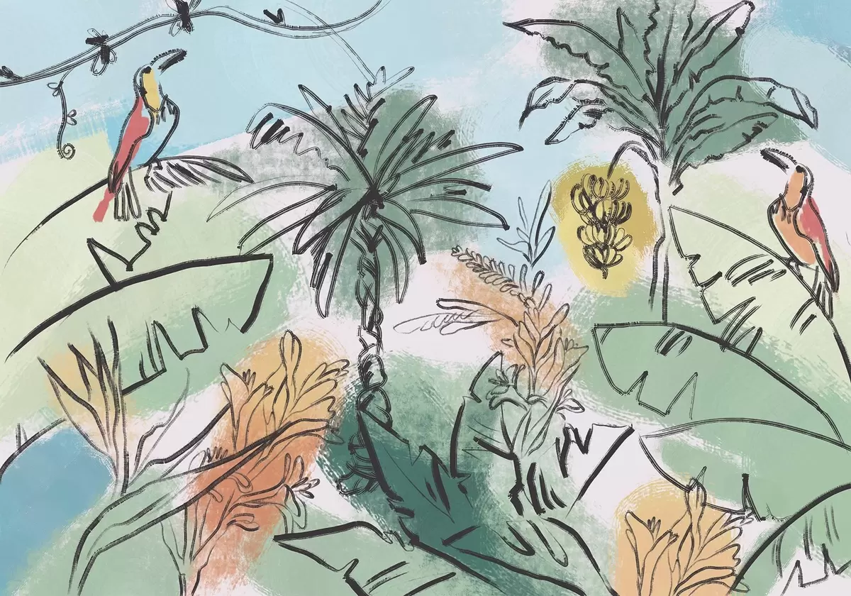 Фототапет Тропически принт с папагали, богати цветове, тропици Nr w04019