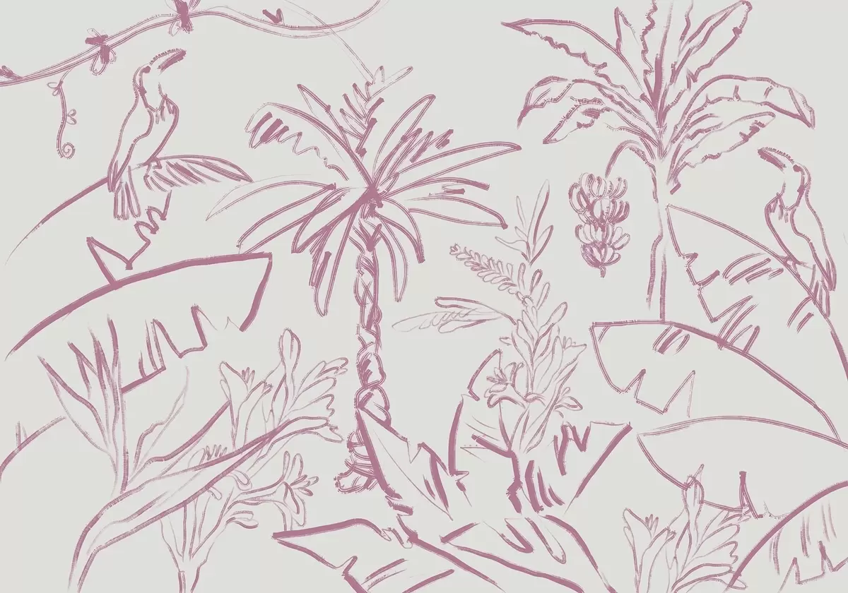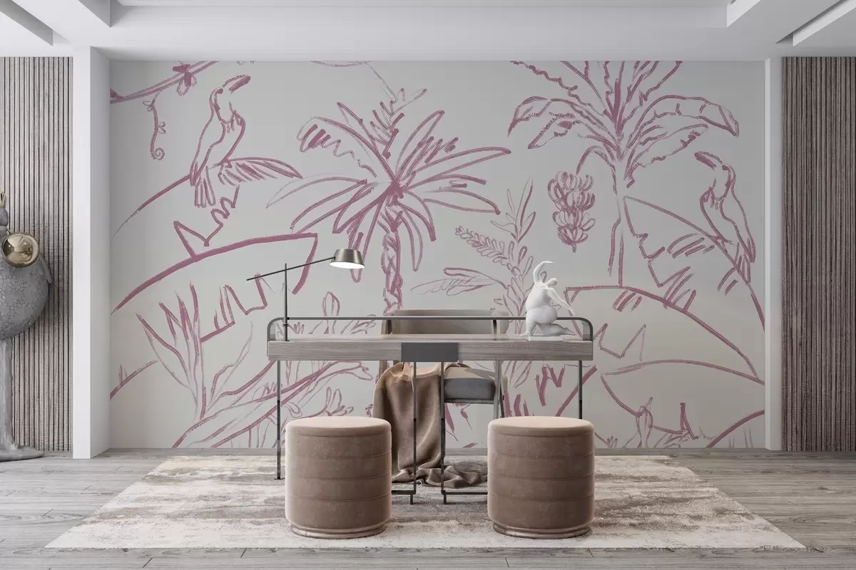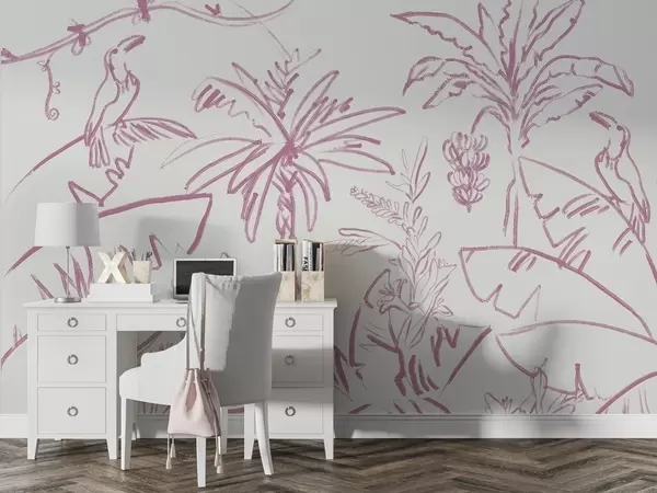 Фототапет Тропически линии в розово, тропически растения, банани Nr w04020v2