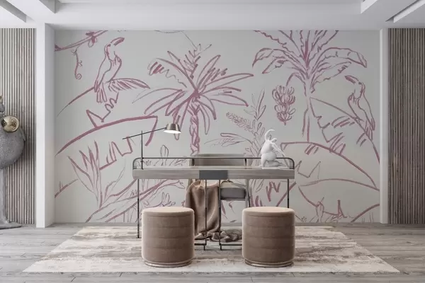 Фототапет Тропически линии в розово, тропически растения, банани Nr w04020v2