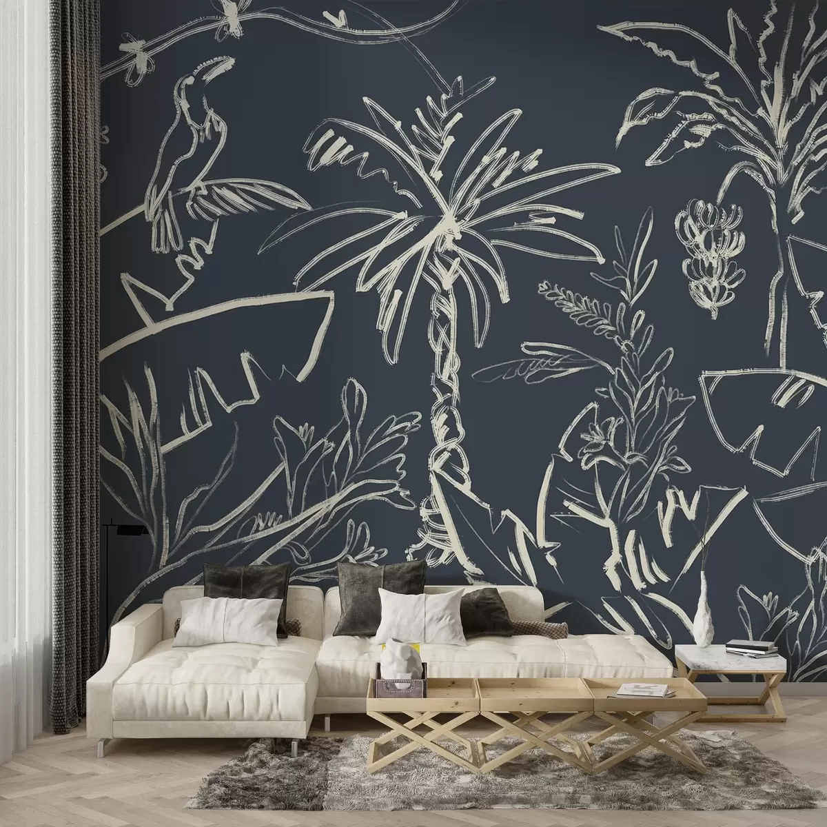 Фототапет Тропически модел на тъмносин фон, палми, банани Nr w04020v4