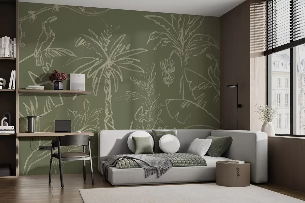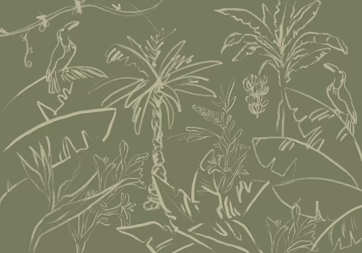 Фототапет Тропически модел на зелен фон, палми, банани Nr w04020v6