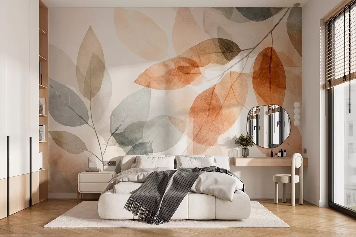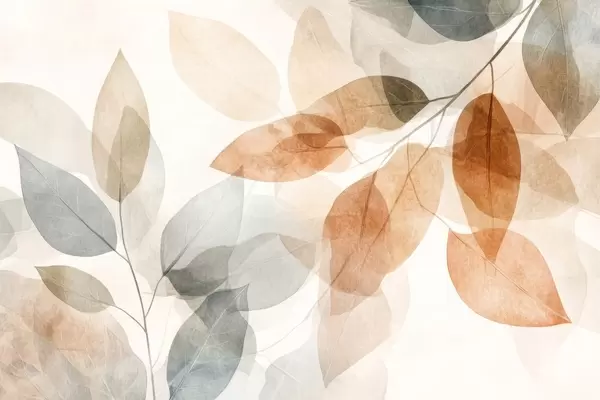 Фототапет листа в акварелен стил в нюанси на сепия и сиво Nr w04024