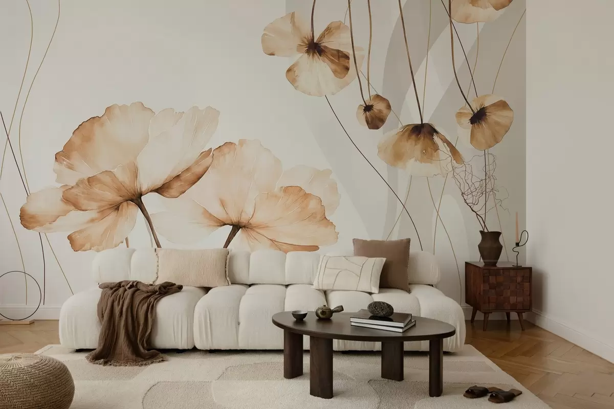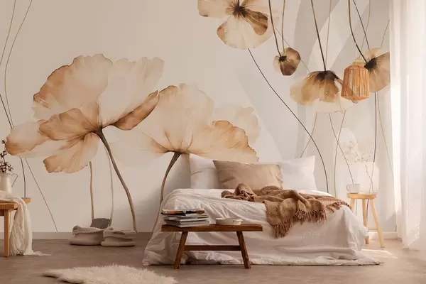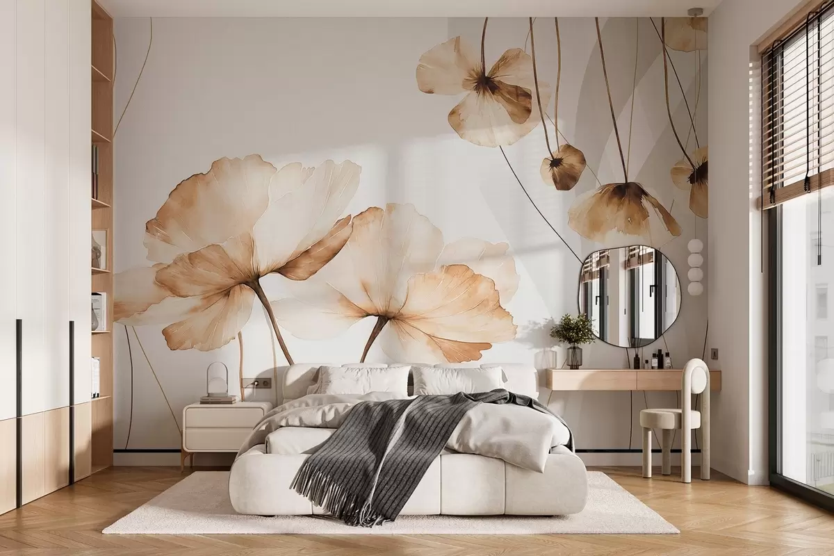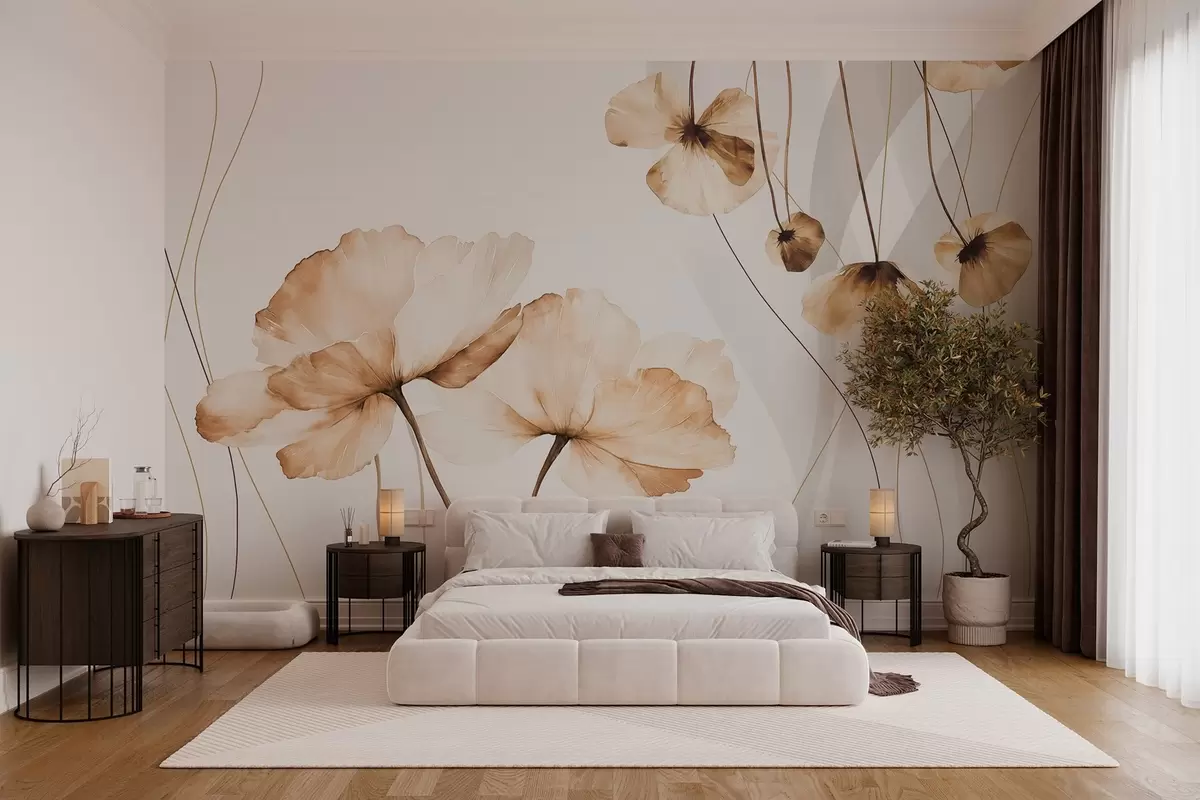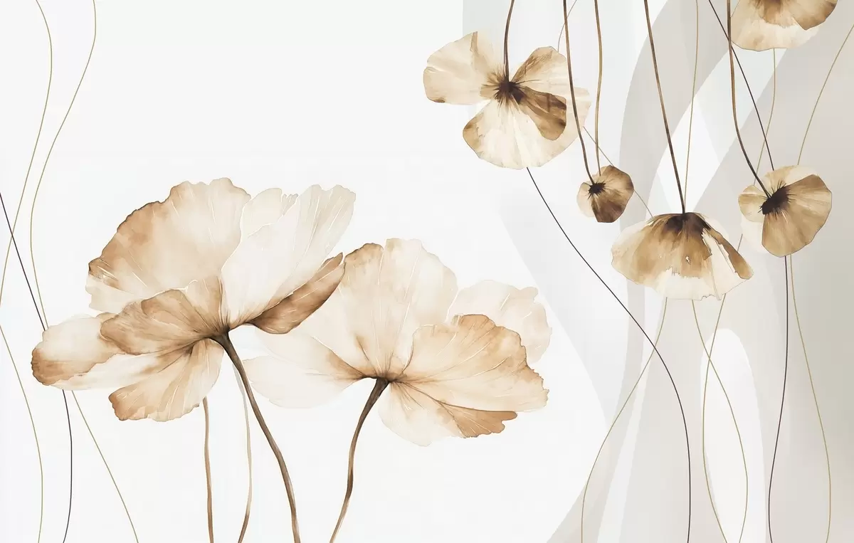 Фототапет цветя в акварелен стил в кафяви тонове Nr w04026