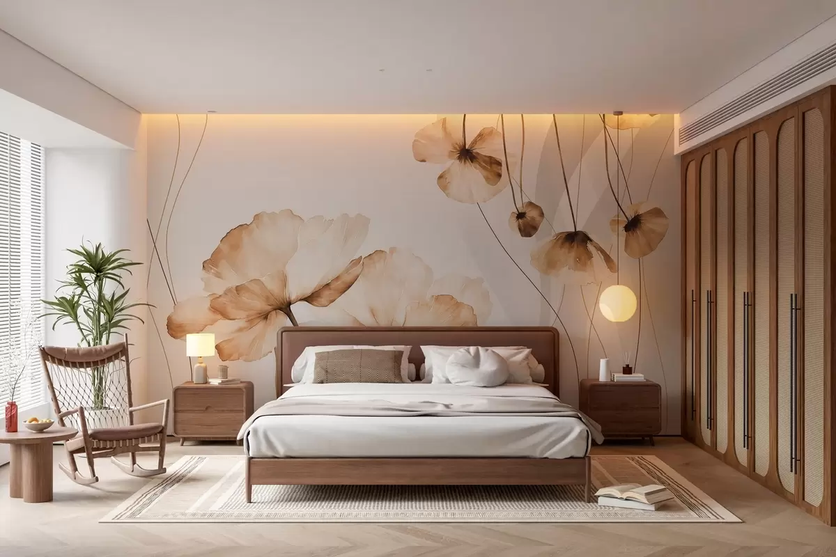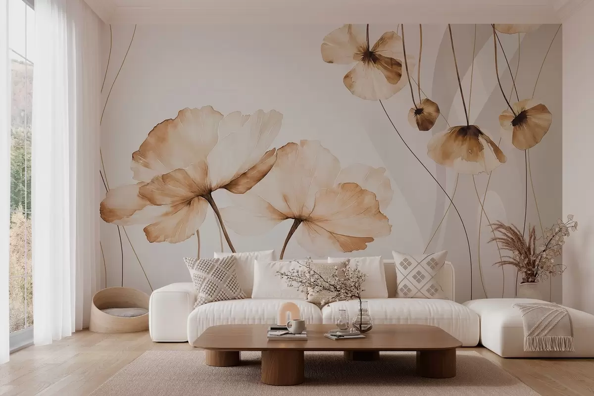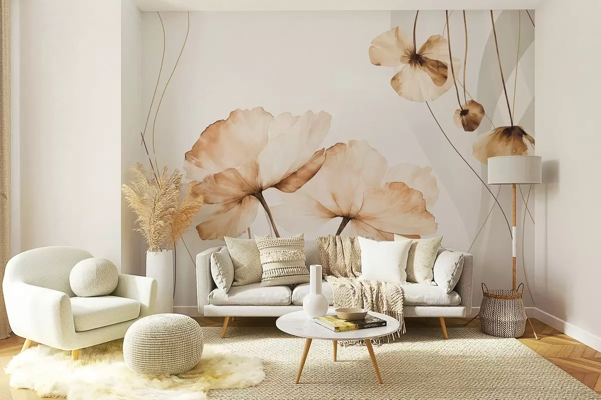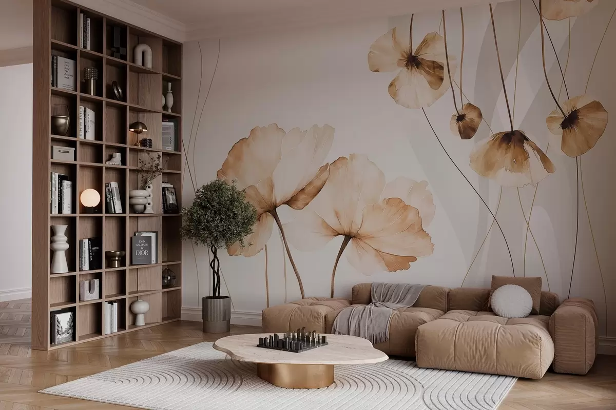 Фототапет цветя в акварелен стил в кафяви тонове Nr w04026