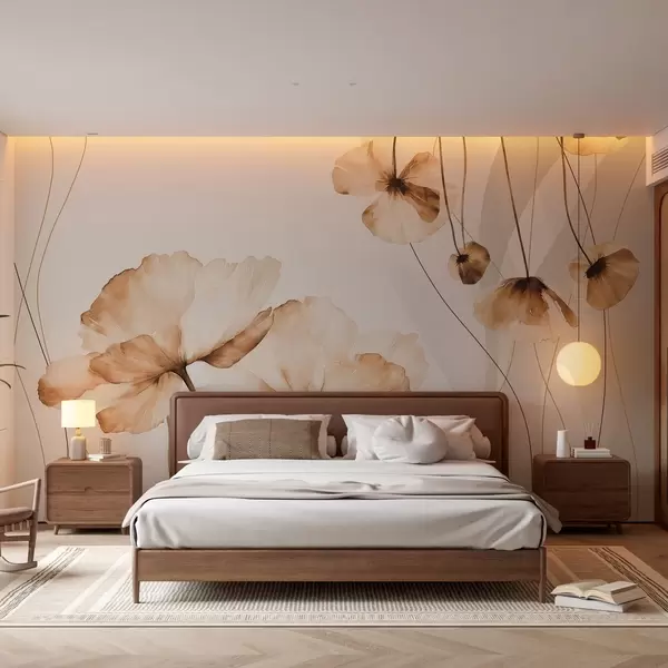 Фототапет цветя в акварелен стил в кафяви тонове Nr w04026