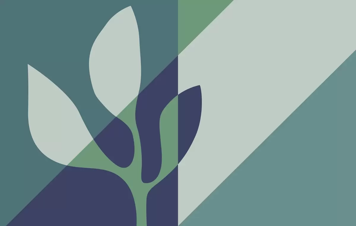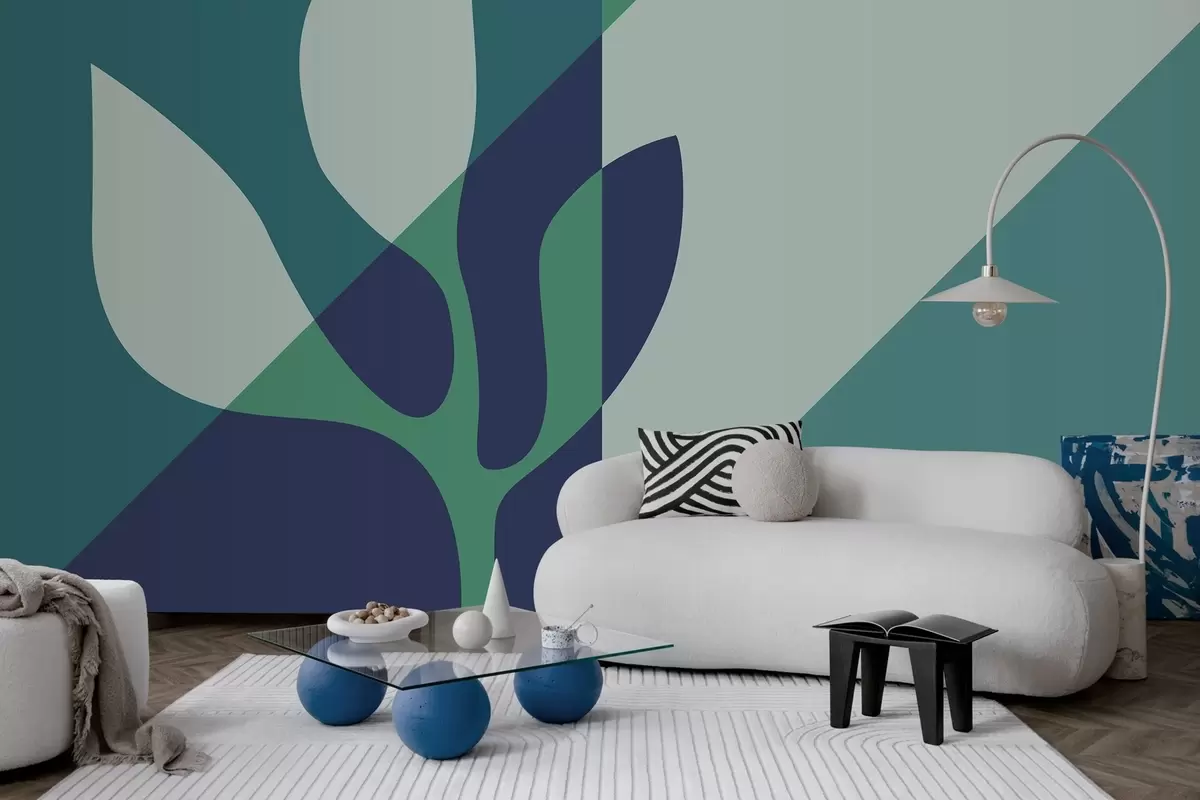Фототапет абстрактно графично растение на фона на геометрия в сини тонове Nr w04028v1