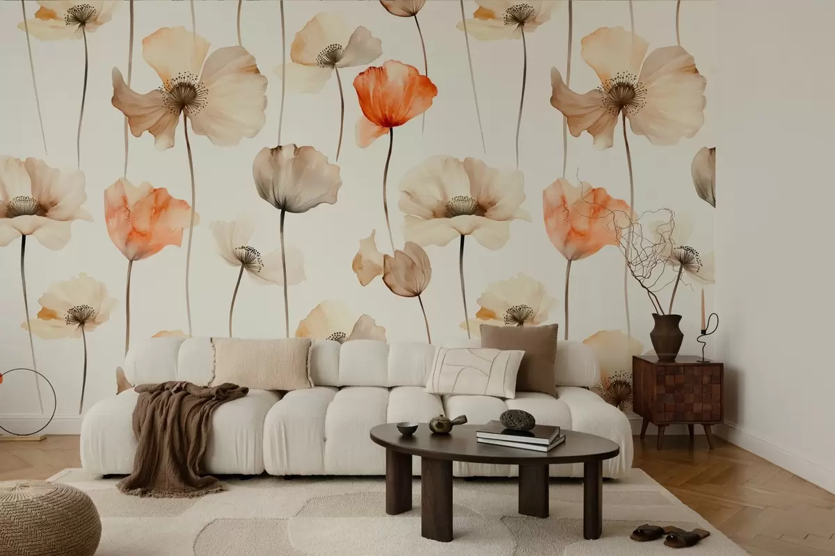 Фототапет къдрави макове в акварелен стил Nr w04031