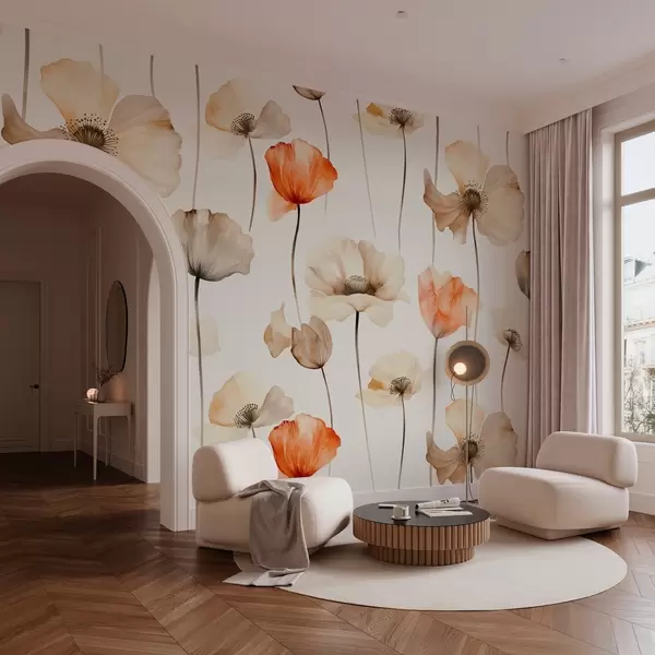 Фототапет къдрави макове в акварелен стил Nr w04031