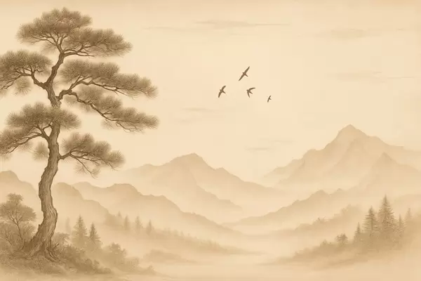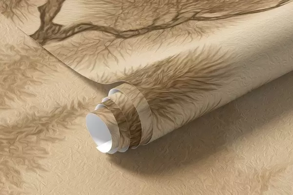 Фототапет панорама на хълмове с голямо дърво в стил сепия Nr w04033
