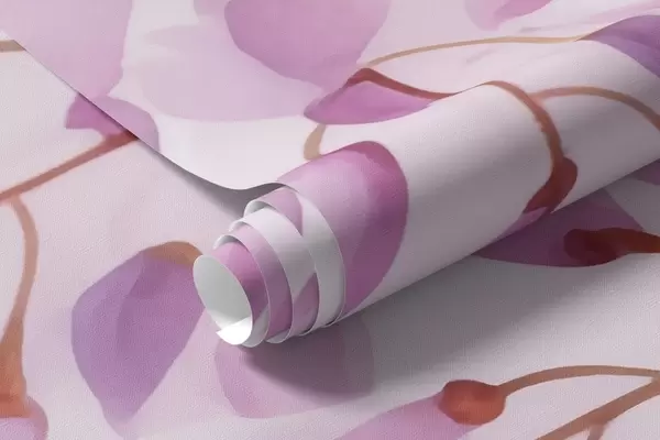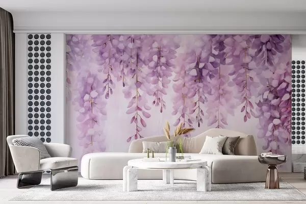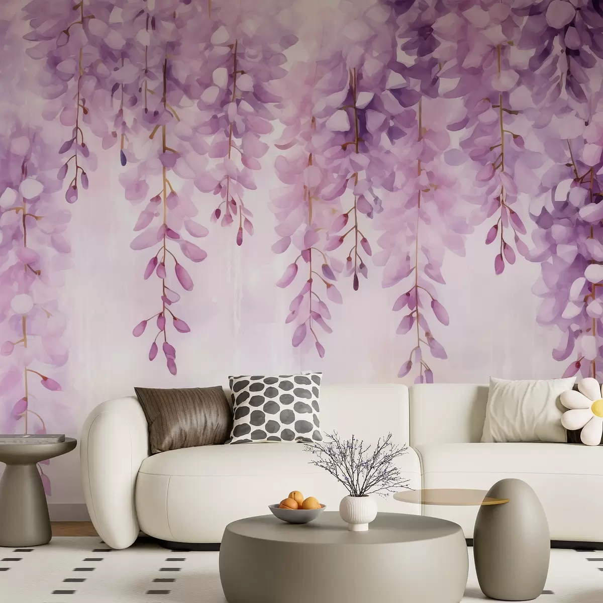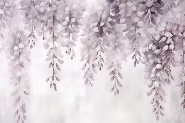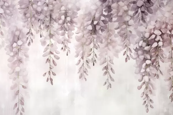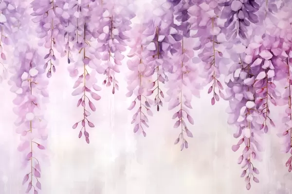 Фототапет Деликатна акварелна композиция с каскадна глициния в меки лавандулови и розови тонове, създаваща спокойствие, Nr w04034