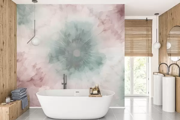Фототапет Акварелен радиален модел, съчетаващ мъгливо зелено и прашно розово, напомнящ за мекотата на утринната роса и първия дъх на деня Nr w04036v2
