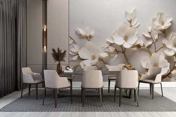 Фототапет Елегантни релефни цветя с меки стъбла оформят спокойна, хармонична сцена Nr w04039