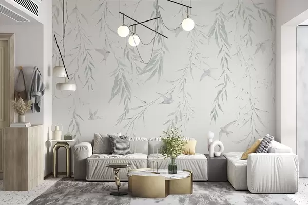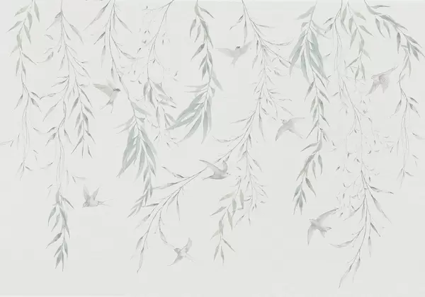 Фототапет Висящи клонки със зелени листа и птици Nr w04052