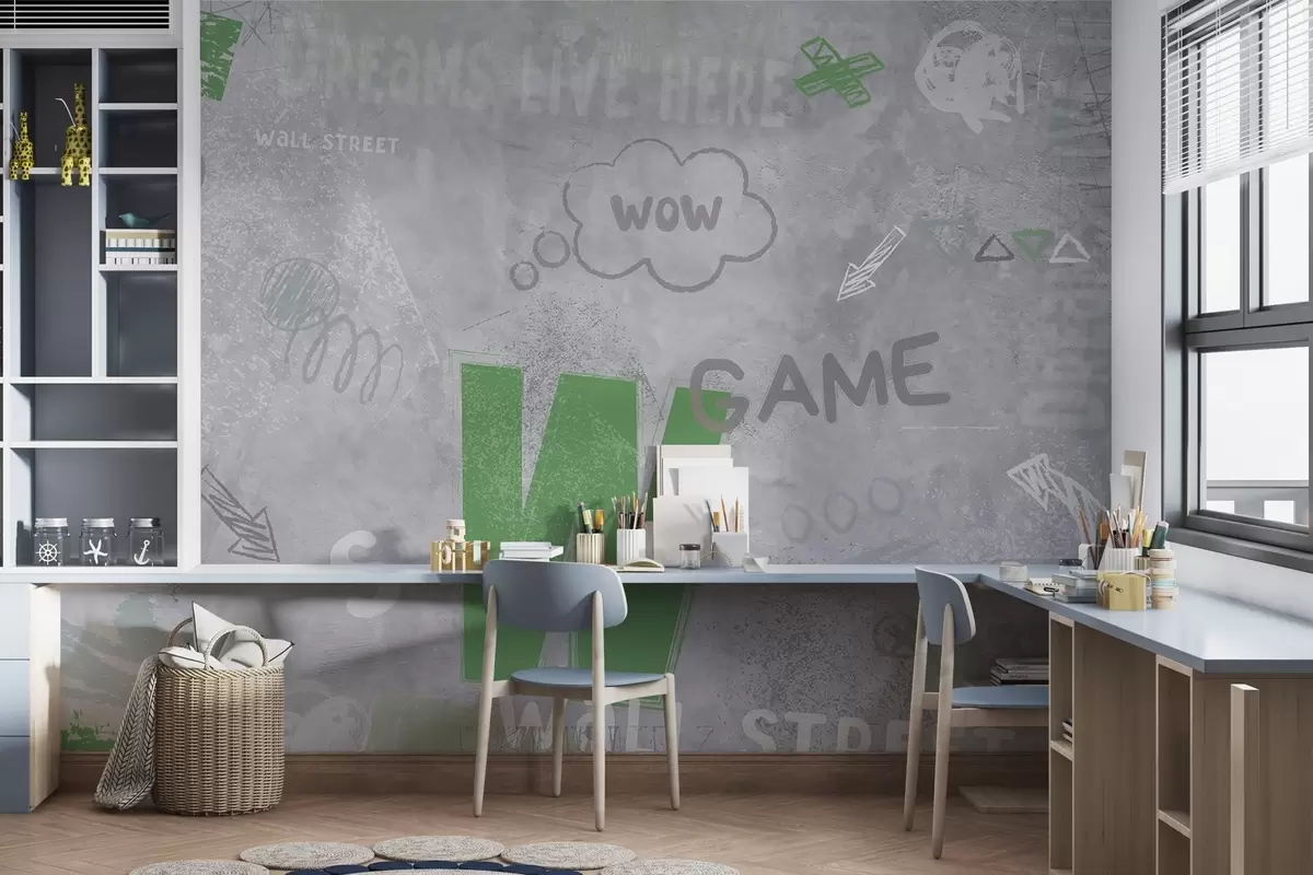 Фототапет Дизайн на улично изкуство със зелен цвят на фона на бетонна стена Nr w04056v2