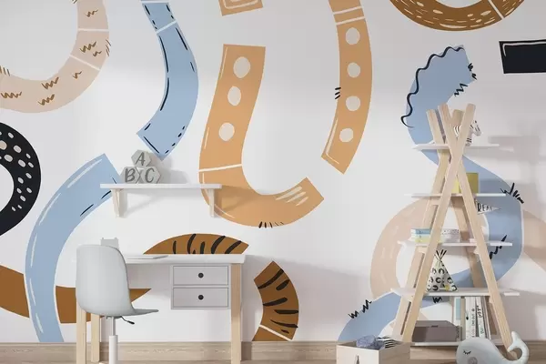 Фототапет Абстрактни рисунки, младежки, дудъли, кафяво, синьо, розово Nr w04066