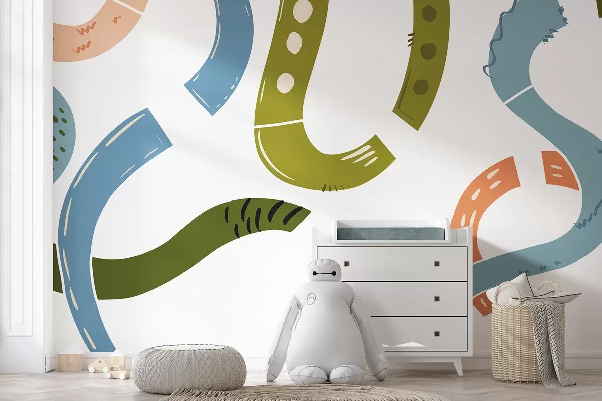 Фототапет Абстрактни рисунки, младежки, дудъли, зелено, синьо, розово Nr w04066v2
