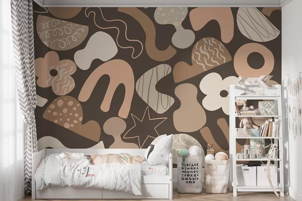 Фототапет Геометрични фигури с рисунки, младежки, тъмнобежов фон Nr w04068v1