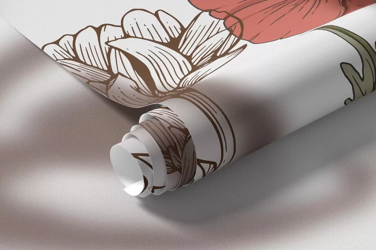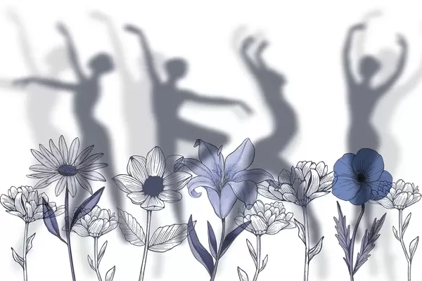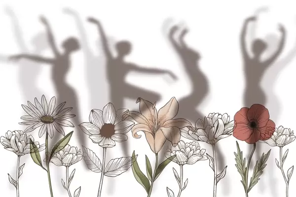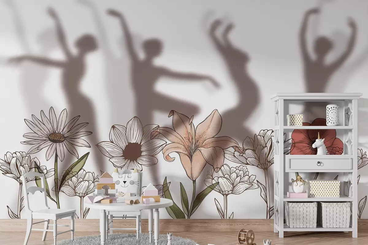 Фототапет Силуети на балерини, рустикални цветя, изкуство на линиите, червени и бежови цветове Nr w04069