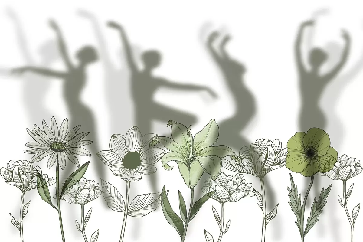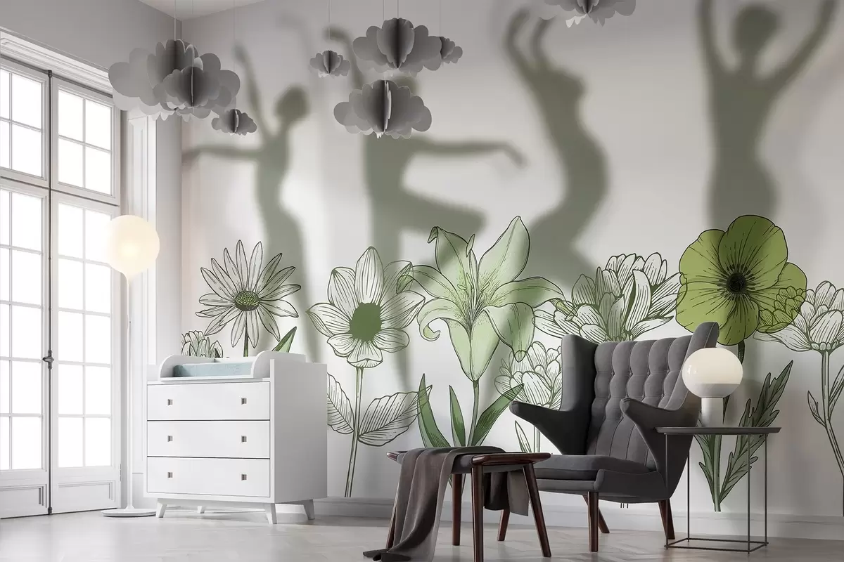 Фототапет Силуети на балерини, селски цветя, изкуство на линиите, зелени цветове Nr w04069v1