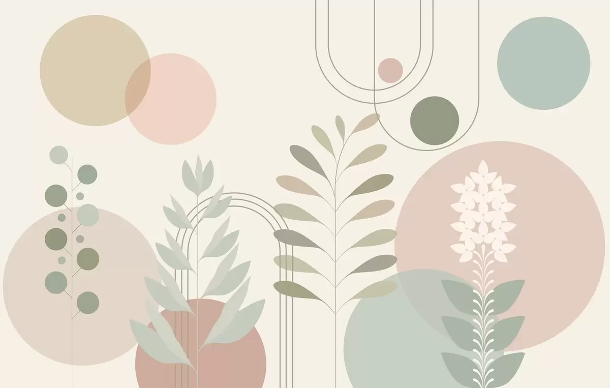 Фототапет геометрична абстракция с кръгове и стилизирани растения на кремав фон Nr w04070