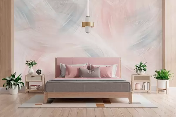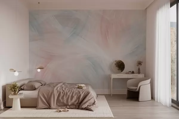 Фототапет ефирни пера в розови и сини нюанси Nr w04071