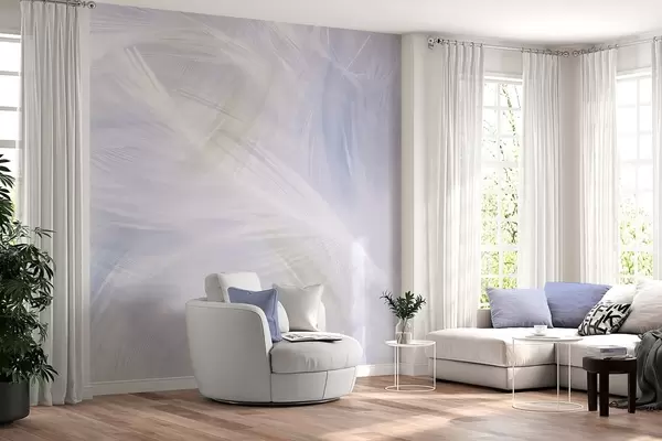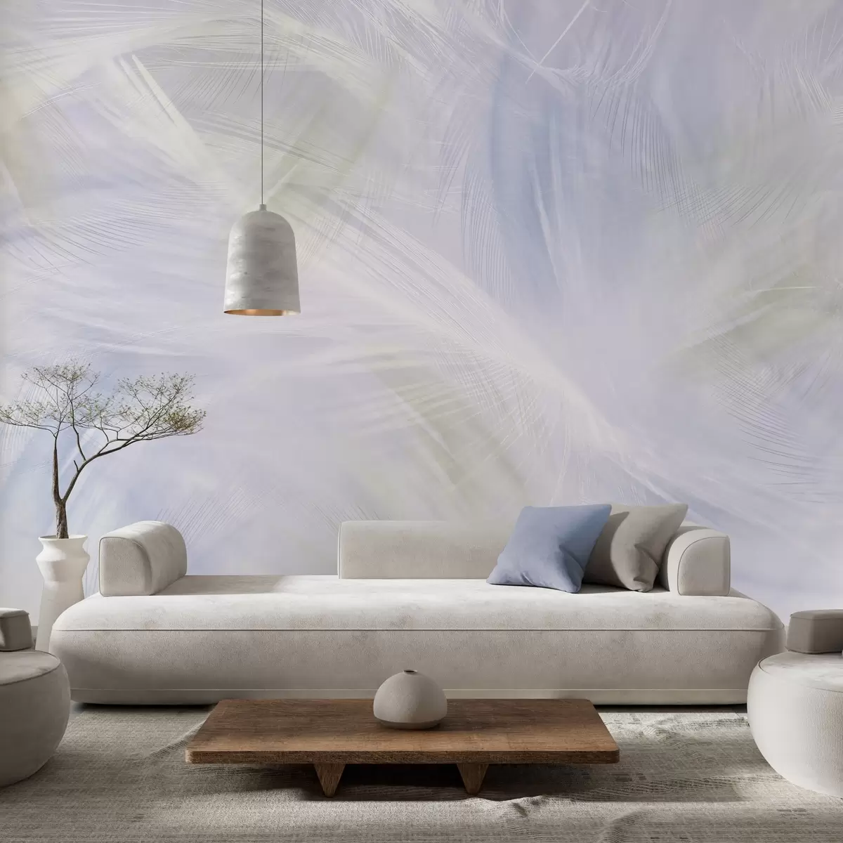 Фототапет ефирни пера в бежови и сини нюанси Nr w04071v1